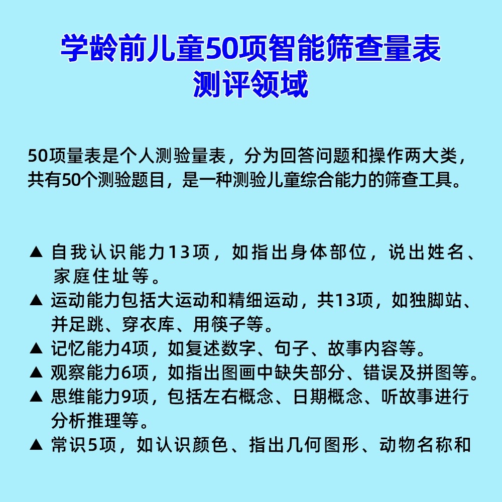 學(xué)齡前兒童50項(xiàng)智能篩查量表