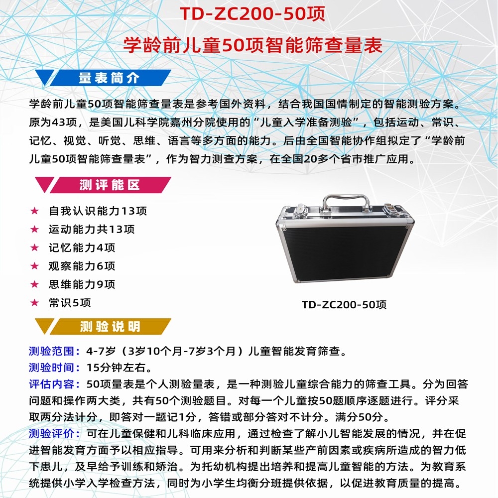 TD-ZC200-50項(xiàng) 兒童智力測(cè)試工具箱