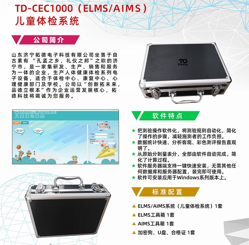 1、ELMS/AIMS系統(tǒng)(兒童體檢系統(tǒng)) 1套